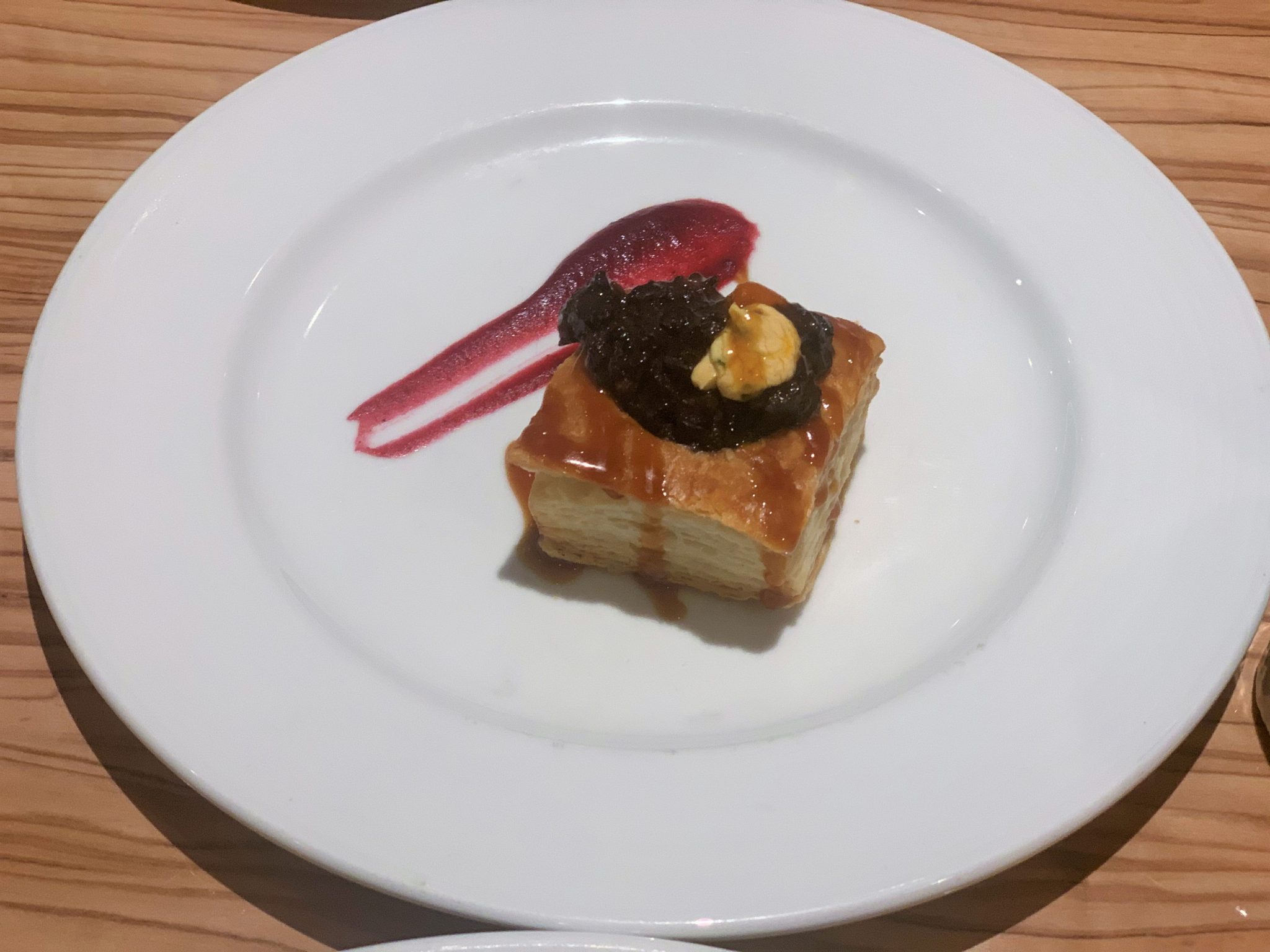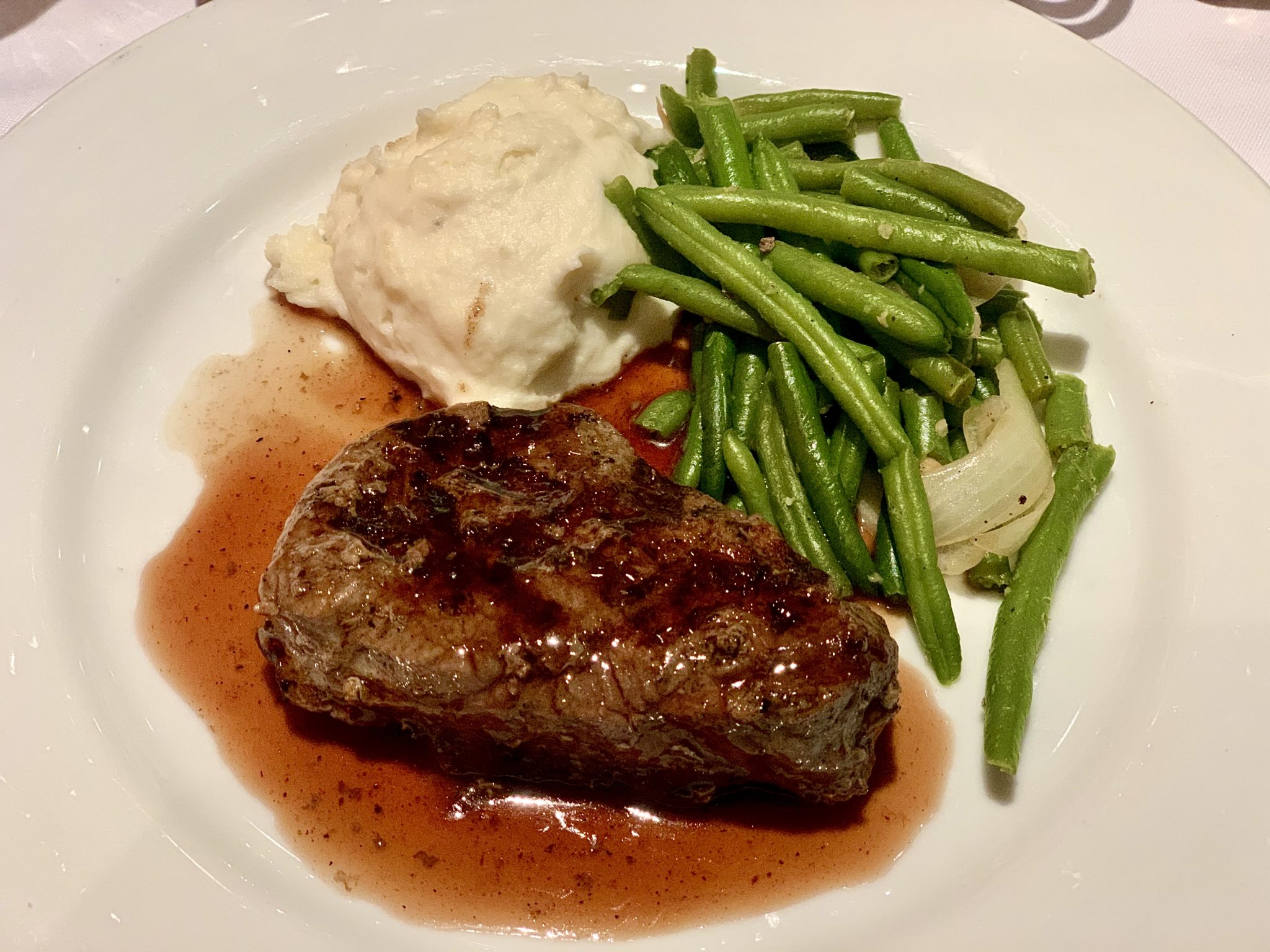 It started off strong with solid appetizers including the smoked oysters and shrimp cocktail. I did the surf and turf for my entree and thought the steak was pretty average. The lobster was well prepared, but the serving size felt small for a specialty restaurant. The sides were on par with the main dining room, and the desserts were average as well. We still think that the best cruise ship steakhouse is Fine Cut on Celebrity Edge. Dinner took nearly two hours tonight, and the service was rather inconsistent.