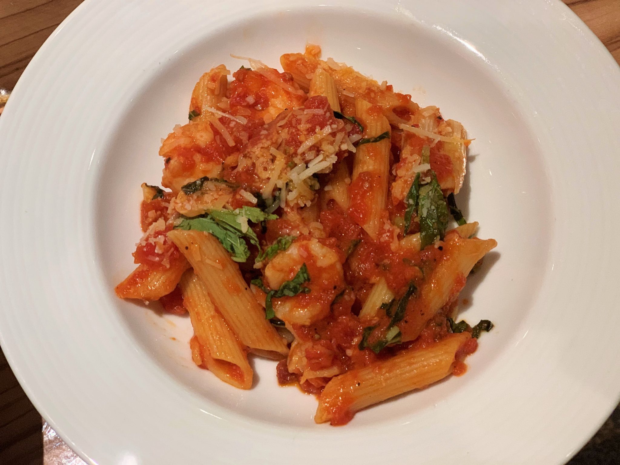 For a starter, I did the escargot which was surprisingly well seasoned and not drenched in butter. For an entree, I did half orders of the two shrimp dishes- one a pasta dish and the other a rice dish. I preferred the aptly named penne, shrimp, and bacon dish.