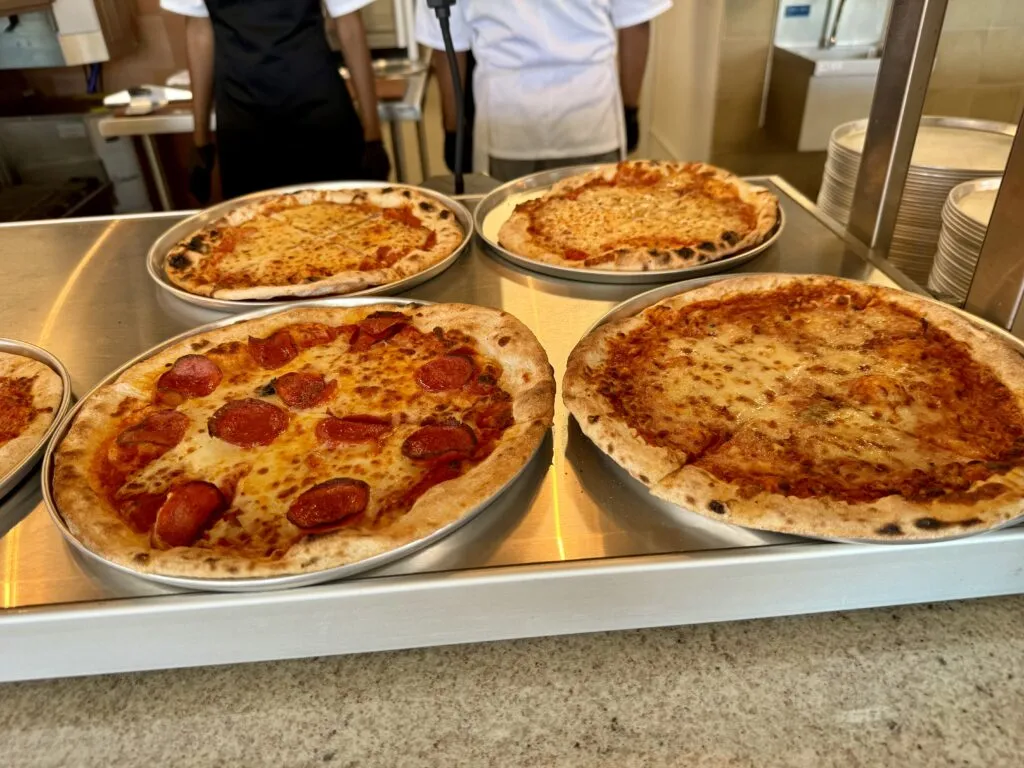 All full-service restaurants offer table service dining with unique food menus. Plus, all restaurants boast a signature bar menu with unique cocktails. Unfortunately though, all of the seating is al fresco. With 90-degree temperatures and scorching sun, these venues didn’t provide the escape from the heat or sun that we were hoping for.
