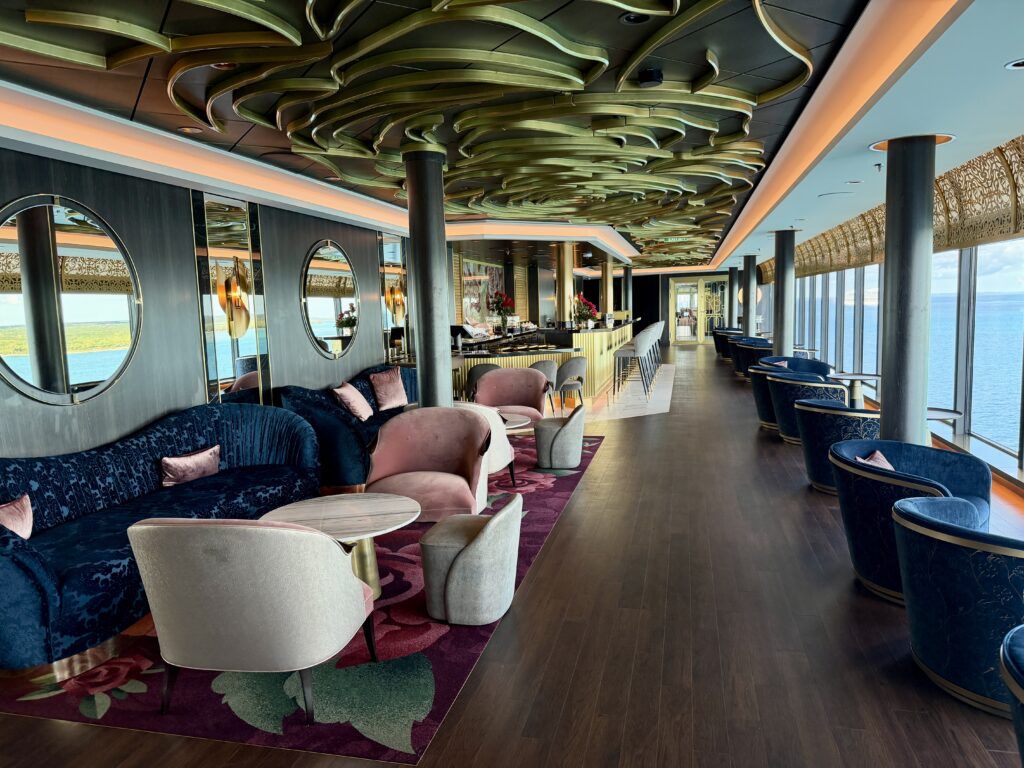 With tasteful décor, plush seating, and ocean views, this is the perfect spot to grab a pre-dinner or post-dinner cocktail. The menu features a list of luxurious cocktails, wines, and champagnes. Select bars around the ship also serve a new zero-proof menu.