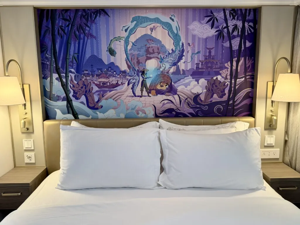 On Disney Destiny, you can expect over-the-bed murals depicting Hercules and Mulan (Decks 2, 6, 7), Brave and Raya (Decks 8 and 9), Big Hero 6 and Incredibles (Decks 10 and 11), and Fantasia (Decks 12 and 13). There’s also an Incredibles and a Hercules-themed Royal Suite. Not to mention, the nearly 2000 sqft. Destiny Tower Suite themed to Iron Man.