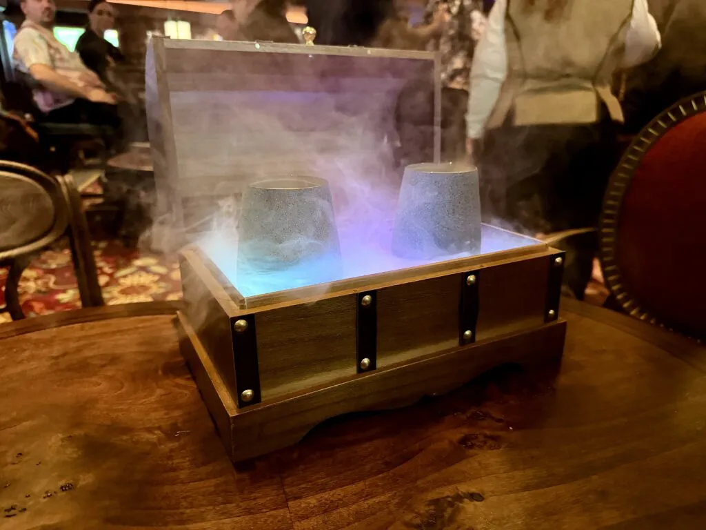 The Sanctum is a new Dr. Strange-themed lounge serving up some mystical cocktails like Vapors of Valtor and the electrifying Mirror Dimension. While the cocktails were good, the theming of this space fell short for us. Maybe it’s our lack of Marvel knowledge, but we liked The Bayou on Disney Wish and Skipper Society on Disney Treasure much better.