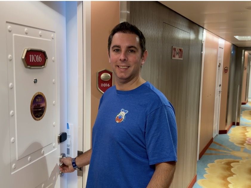 For our first cruise on Disney Destiny, we were sailing as guests of the cruise line and were assigned cabin 11016. Reviewing the deck plans, this portside balcony cabin is a 4A category stateroom on Deck 11. It’s located fairly forward, beyond the forward bank of elevators. Being on Deck 11, this cabin is forward from the main pool deck with casual dining options and the pools located nearby.