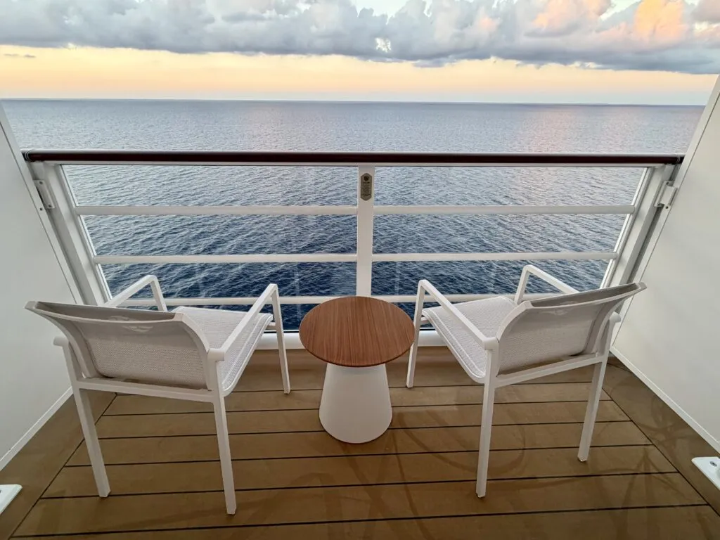 Finally, there was the balcony. The size of the balcony is slightly larger than a typical balcony on modern day cruise ships. There is enough room for 2 upright chairs and a small round table.