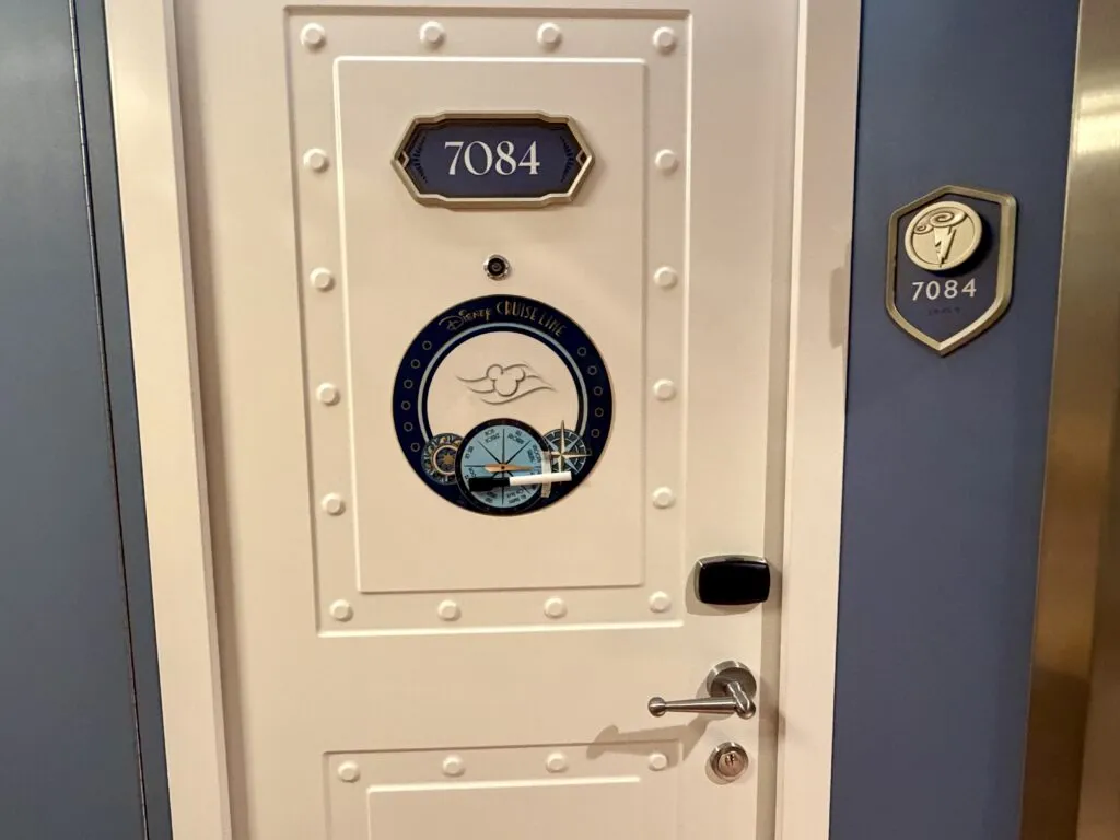 For our second sailing on Disney Destiny, we stayed in a standard Deluxe Oceanview Stateroom with Verandah. Reviewing the deck plans, this 5C category stateroom, cabin 7084, is located midship (slightly closer to the forward bank of elevators) on the portside of Deck 7.