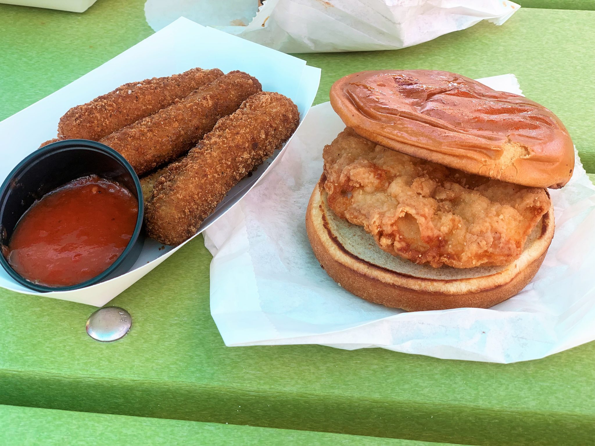 For an extra special treat, add two mozzarella sticks and marinara sauce to the chicken sandwich to make it Chicken Parmesan. Delicious!