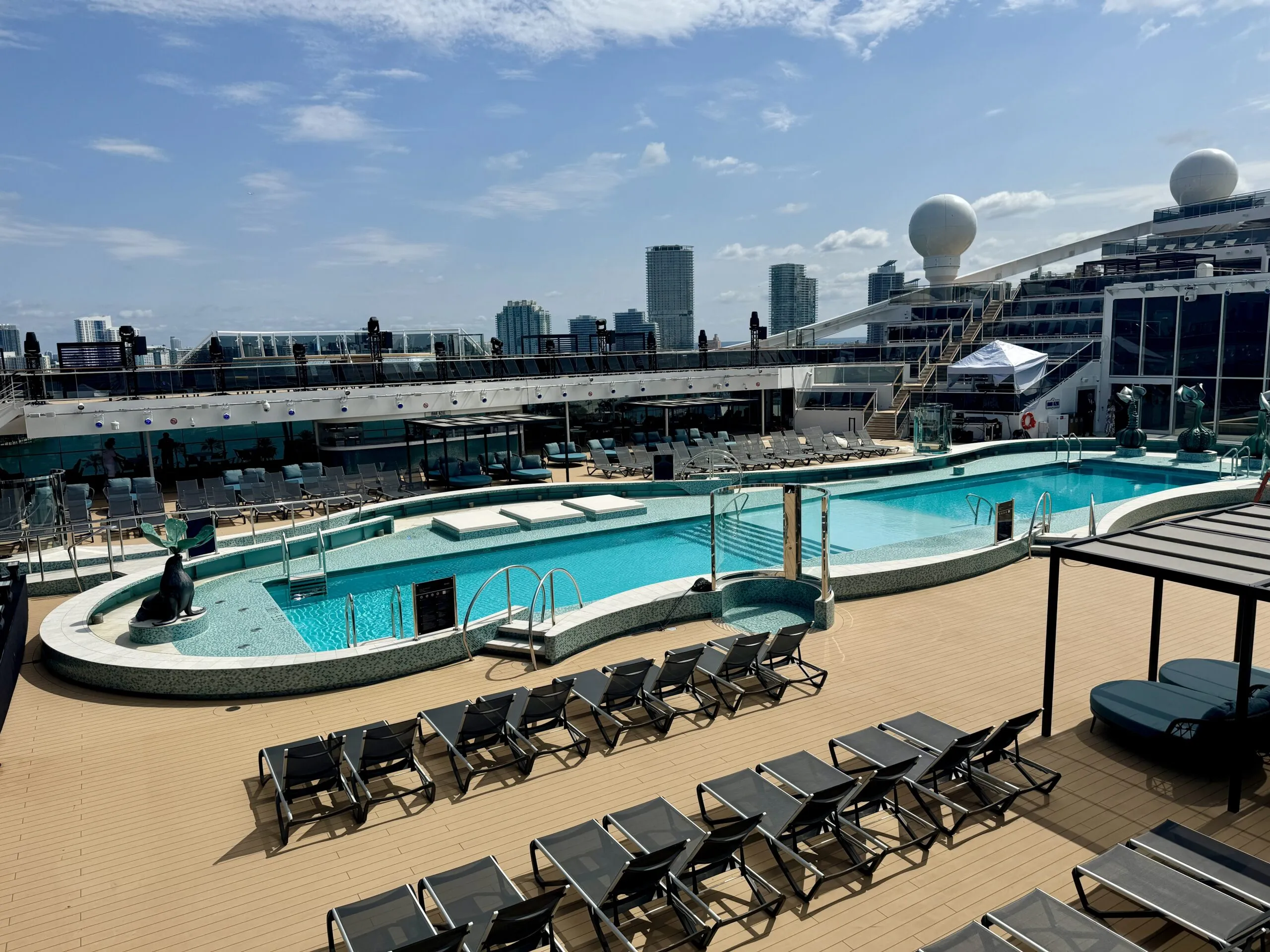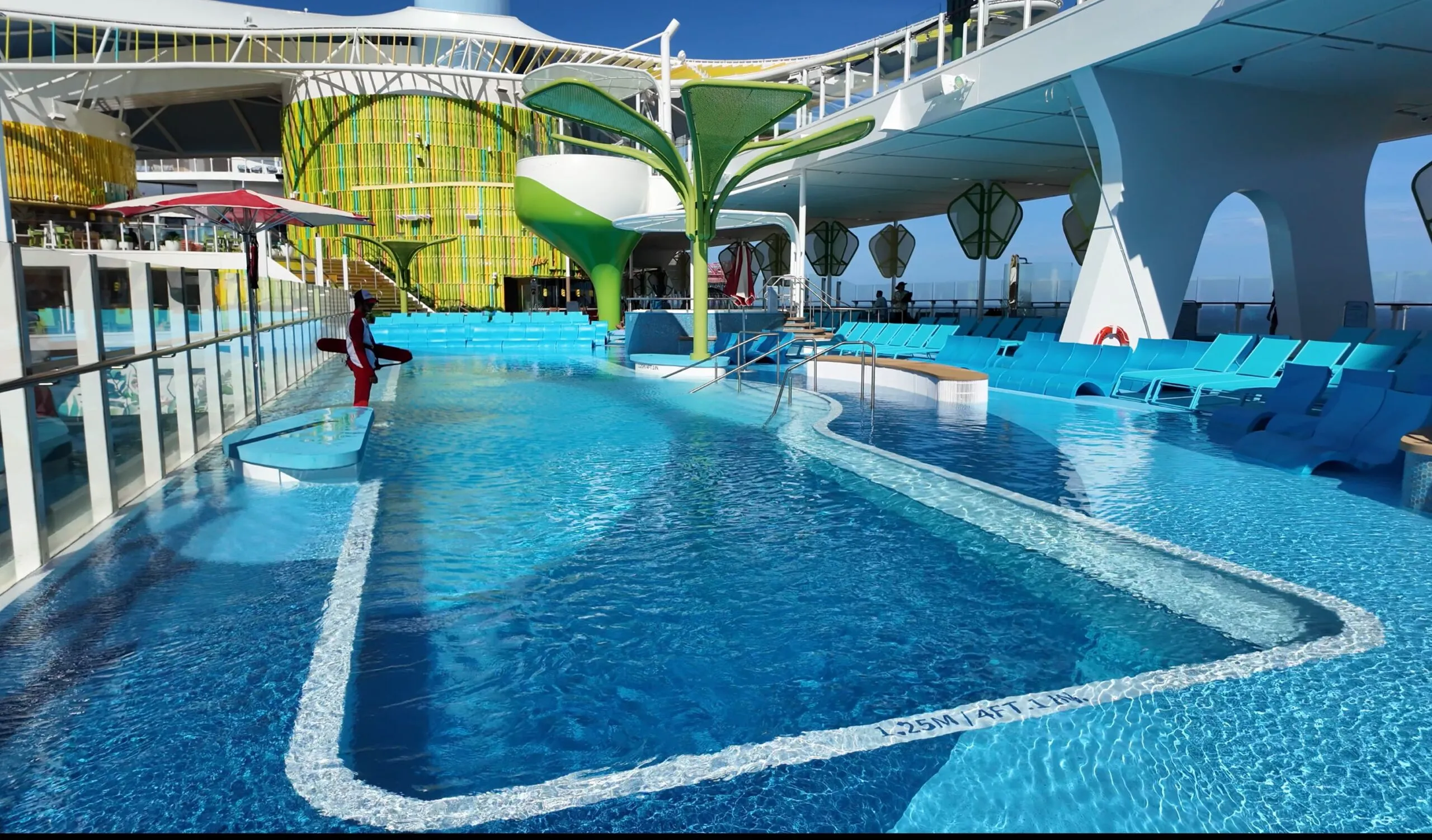 MSC World America surprised us with several large pools spread throughout the ship. Each offers distinct experiences and appeals to a variety of cruisers.