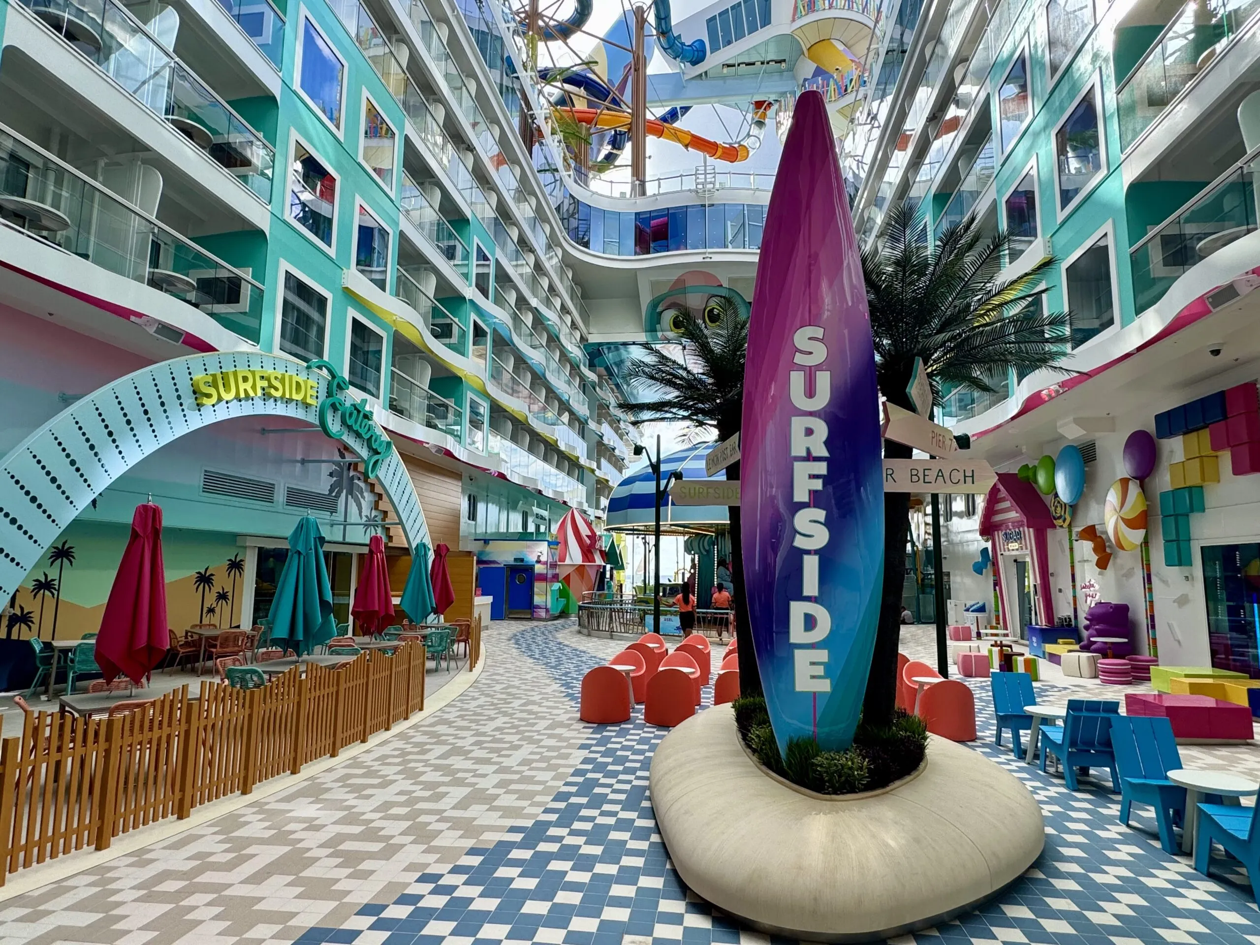 Families with young children have their own neighborhood: the Surfside Neighborhood. It features Splashaway Bay with fountains and smaller slides for younger children, and Baby Bay for the youngest cruisers. There’s also kid-friendly dining at Surfside Eatery and Surfside Bites.