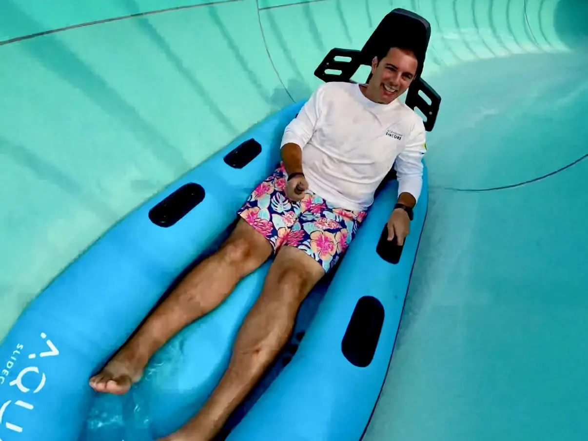 This dramatic jolt sets it apart from typical cruise ship waterslides. After that initial launch, it transforms into a fun, raft-style slide that delivers speed and excitement.