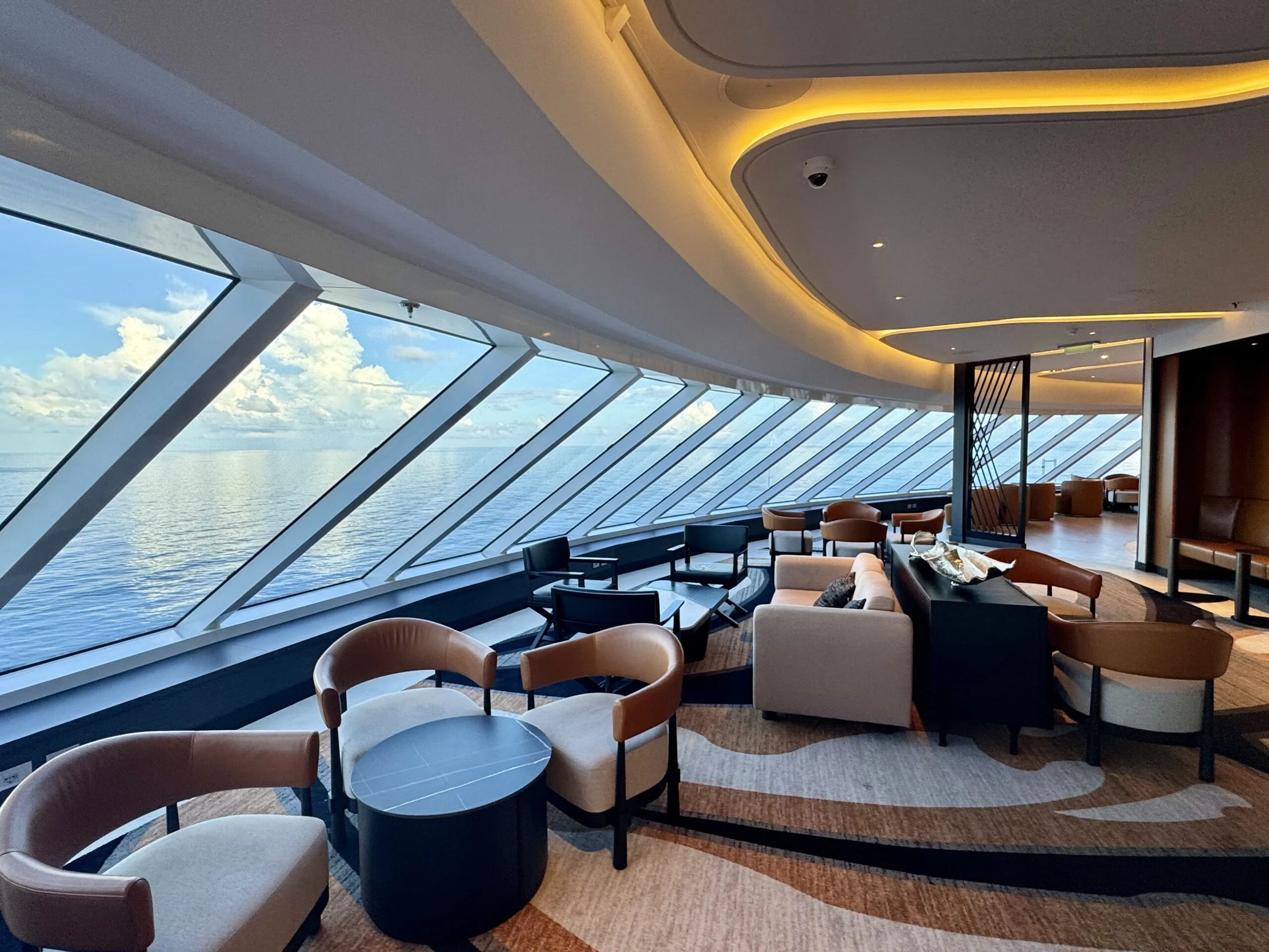 The redesigned Metropolitan Bar, Whiskey Bar, and Swirls Wine Bar feature thoughtful layouts and upscale finishes. The Observation Lounge is a great forward-facing space with panoramic views. Overall, the public spaces seem more intentionally designed rather than haphazard.