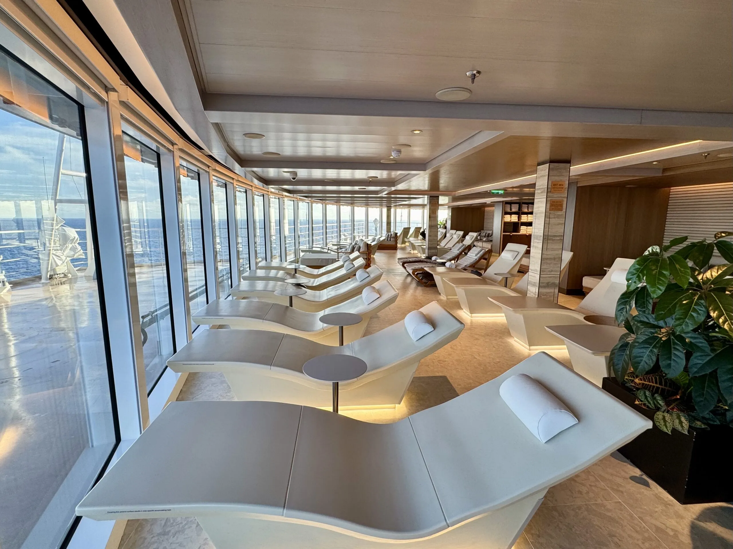 You will also find steam rooms, a sauna, a salt room, and more. Plus, the new outdoor Vitamin D Deck, exclusive to thermal suite guests, offers panoramic views from the front of the ship, making excellent use of this forward-facing outdoor space.