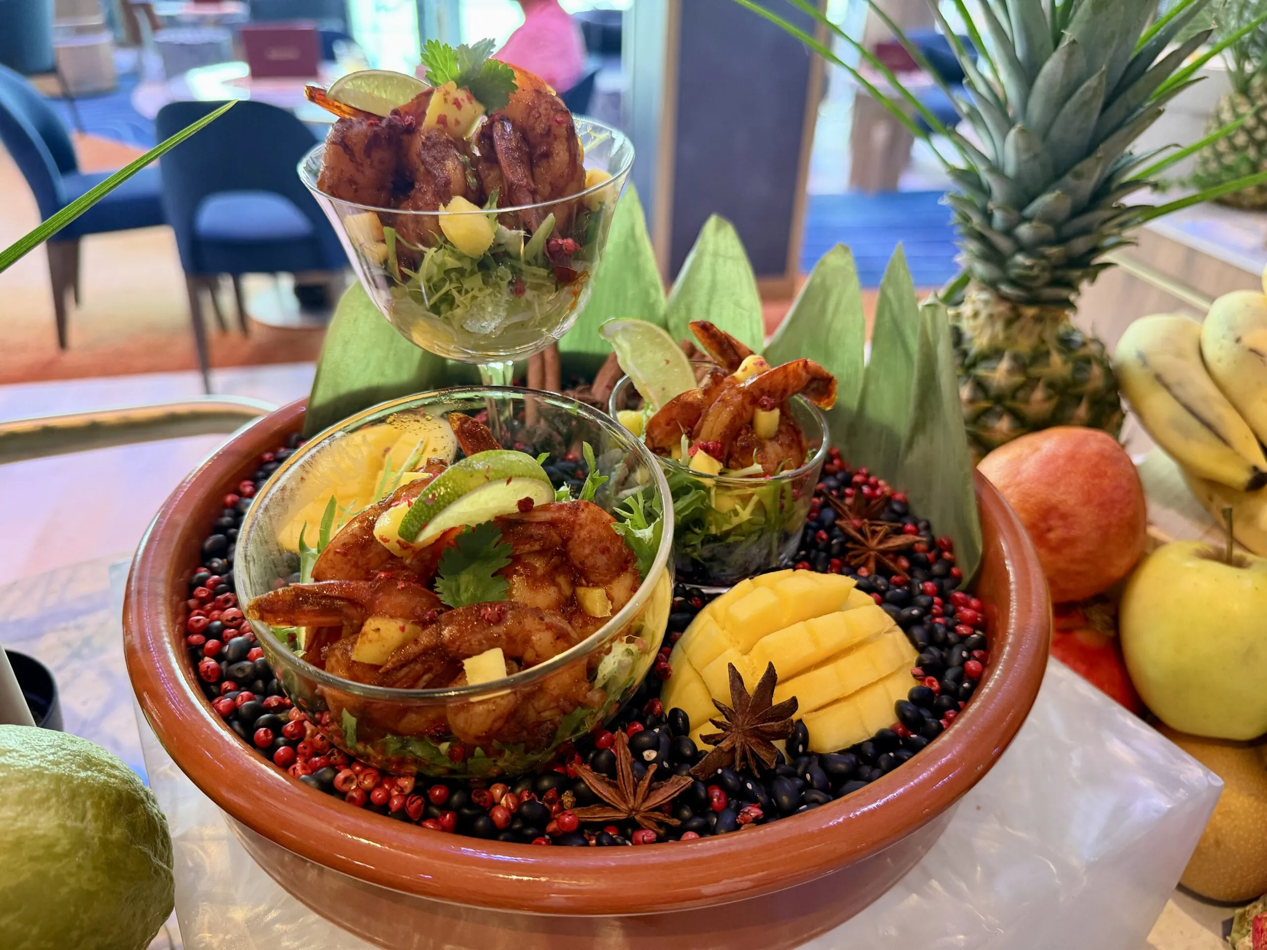 Le Voyage, created by Michelin-starred chef Daniel Boulud, offers an exquisite, globally inspired menu. Standout dishes like Tamarind and Peanut-Crusted Prawns and Brazilian Moqueca are some of the best meals we’ve had at sea.