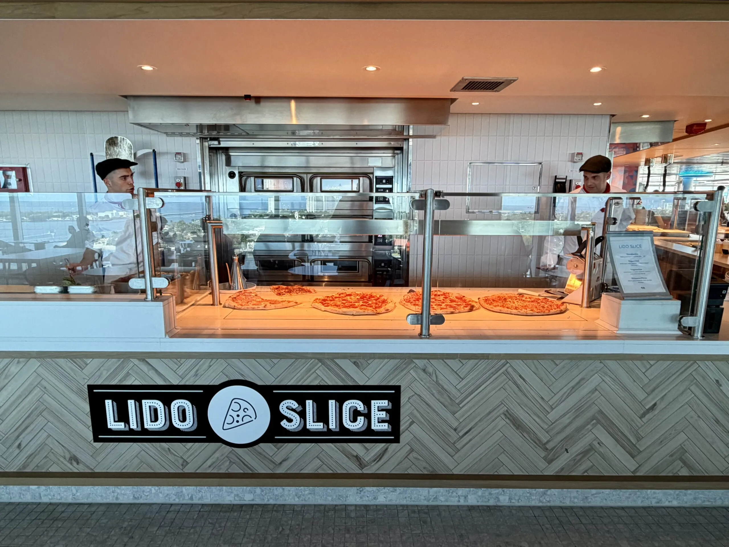 Slice, near the pool deck, serves up freshly made pizza with a standard menu of pepperoni, margherita, and vegetarian. While not as exceptional as Alfredo’s, this poolside pizzeria is still far better than most competitors’, and it’s complimentary.