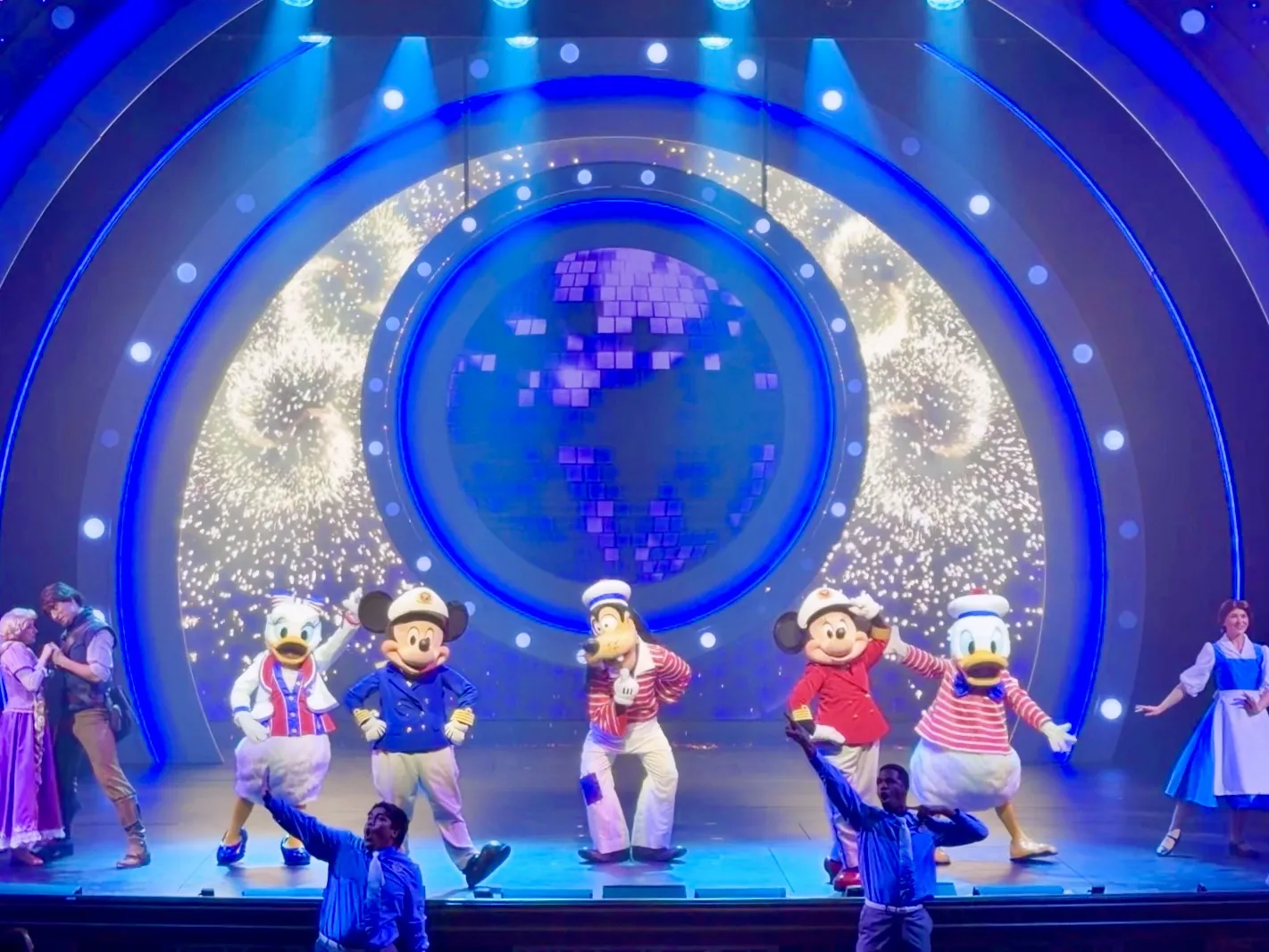 Disney Seas the Adventure is a revue-style welcome-aboard show featuring Disney characters and popular songs. Frozen: A Musical Spectacular adapts the beloved animated film with talented performers, elaborate costumes, and impressive staging.