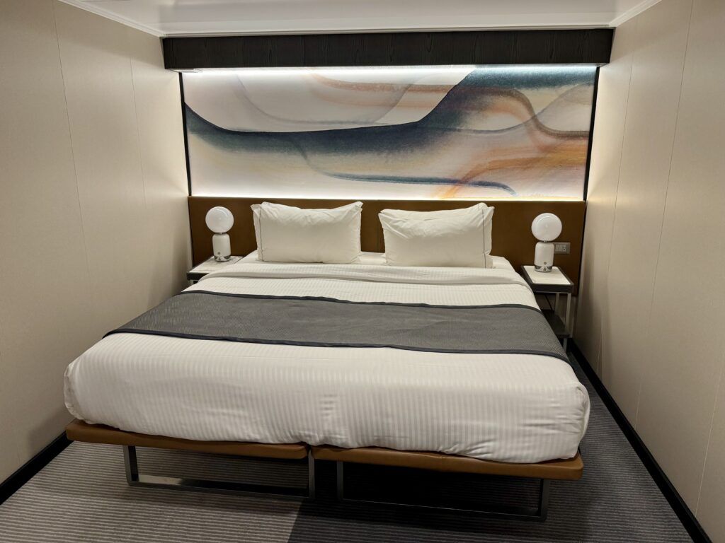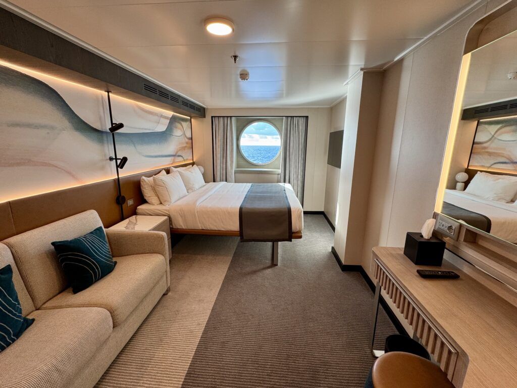 As the newest ship in the fleet, this stateroom was a comfortable and stylish accommodation for our cruise. The room featured upscale finishes and elegant touches, particularly evident in the bathroom. It also featured modern amenities like USB outlets near the bed for charging multiple devices.