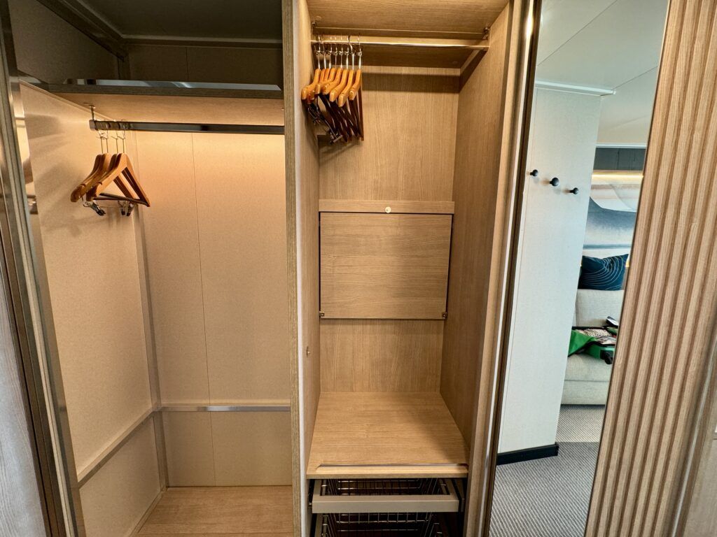 The additional two closets each contain a clothes bar at the top and metal basket drawers at the bottom, which we used to store packing cubes with undergarments and shoes.