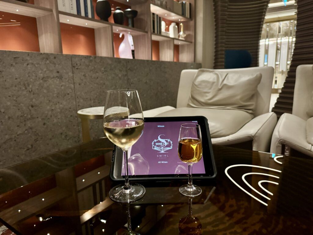 Swirls Wine Bar is a new addition to the line-up on Norwegian Aqua. This small venue is tucked around the corner from The Commodore Room (main dining room) and the Whiskey Bar. In fact, you might almost miss it if you aren’t specifically seeking it out.