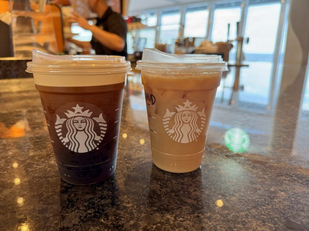 Located off the atrium on Deck 7 is everyone’s favorite coffee house. Starbucks serves as the main location to order specialty coffee drinks. In fact, it’s the only place outside of the dining rooms to even order an espresso or cappuccino.