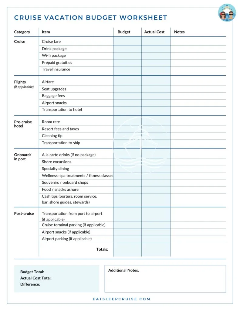 Use our handy budgeting spreadsheet to calculate how much your cruise will actually cost.