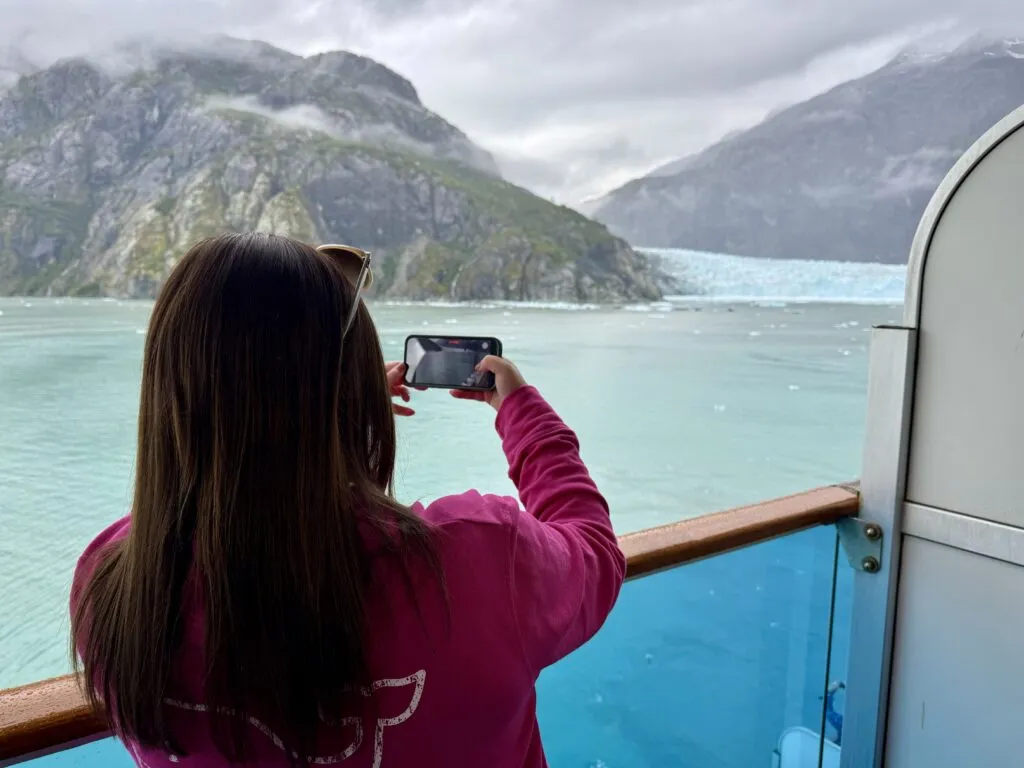 Avoid unexpected roaming charges while out to sea by keeping your phone in airplane mode and relying on the ship’s WiFi when needed. If your cell carrier covers you in Alaska and Canada, you can take your phone out of airplane mode while on land; however, it won’t work while at sea.