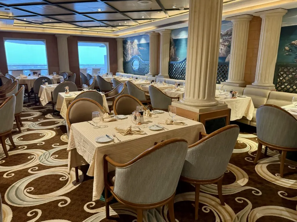 While it’s not required, we highly recommend pre-booking all your dining reservations before your cruise. Popular dining times at the specialty restaurants do fill up quickly. If you forget to do so, make them immediately upon boarding the ship.