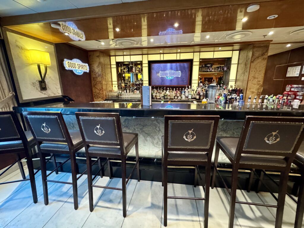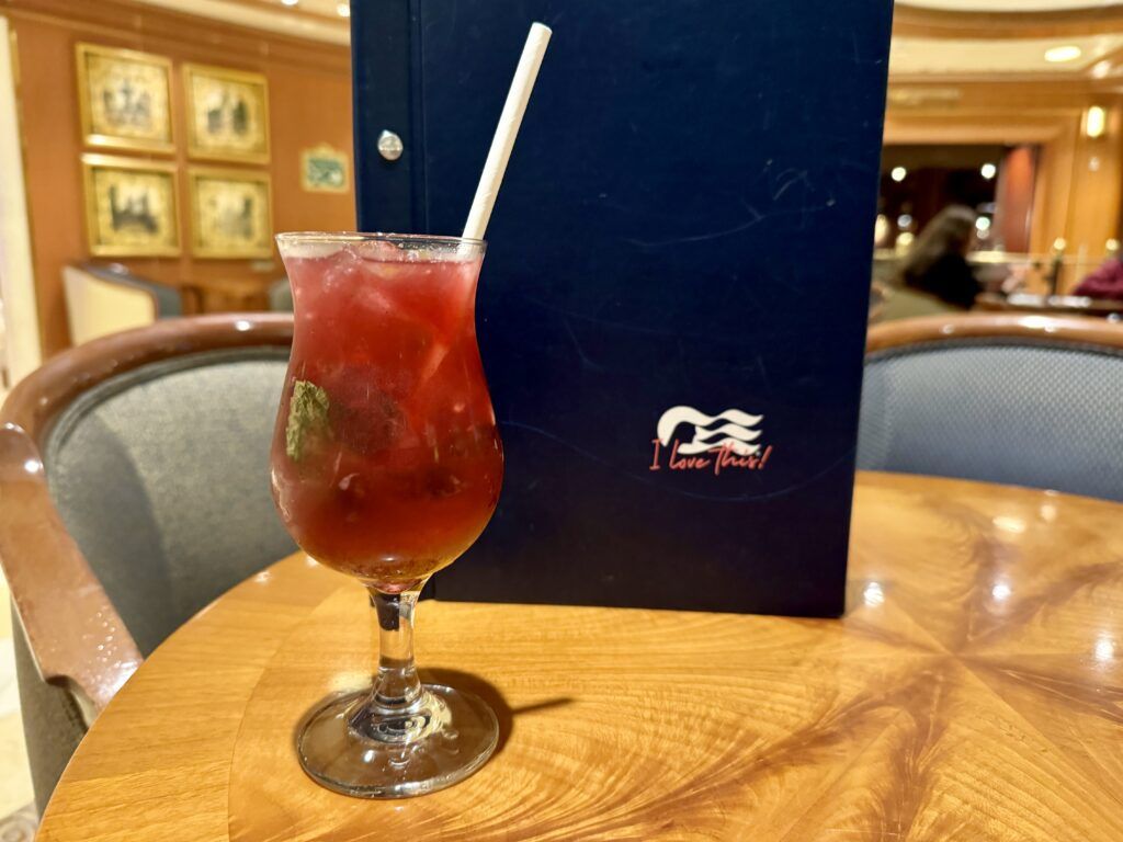 The Wheelhouse Bar, forward on Deck 7, is a massive space. With a small stage on the port side, the venue wasn’t particularly conducive to enjoying the live music. This signature bar menu features modern takes on classic drinks, such as a Jack Daniel’s smash. With nautically-inspired early 20th-century vibes, the Wheelhouse Bar is a more refined spot for a pre-dinner or post-dinner drink.