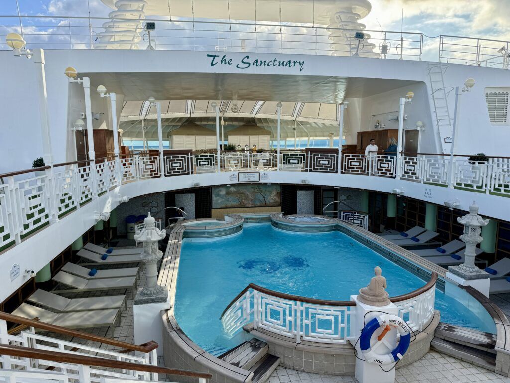 Down on Deck 12 is the Terrace Pool, an aft-facing pool that overlooks the wake. There is also the adults-only Lotus Spa Pool. This pool is tucked away forward on Deck 15. During our cruise, this pool was open to all guests 18+, not only those using the Spa or the Sanctuary.