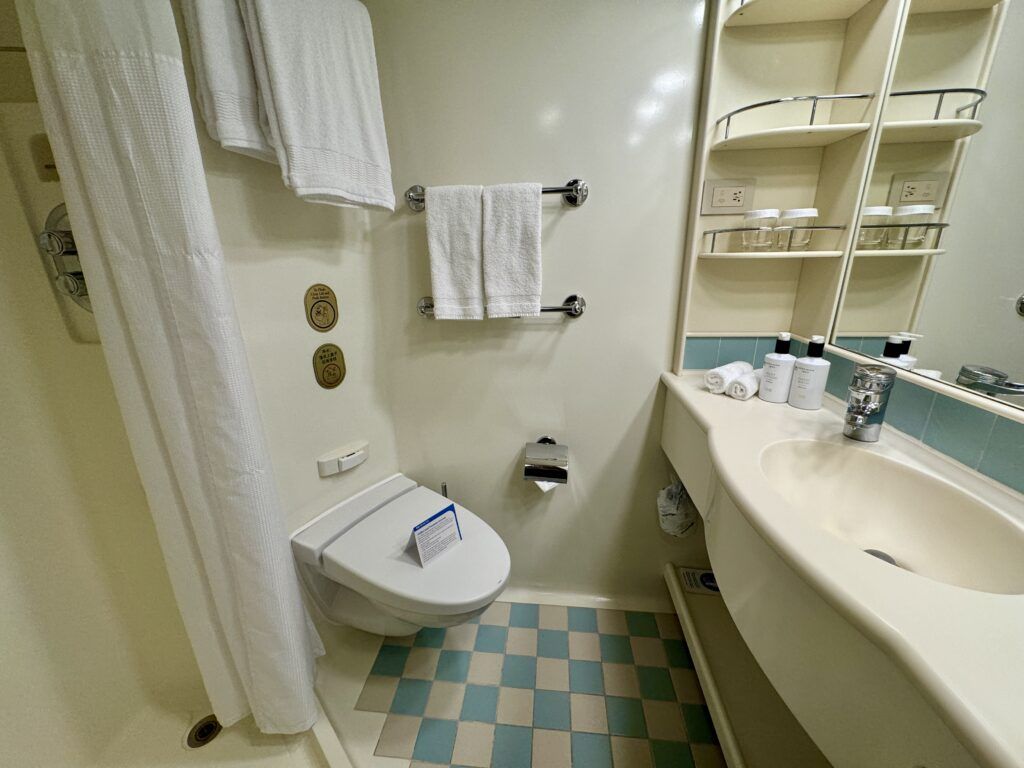 The bathroom was a standard size for a cruise ship bathroom. However, older Princess ships feature showers with curtains. Having just sailed on sister brand Carnival Cruise Line, the shower stall on Sapphire Princess felt even smaller, possibly one of the smallest we’ve ever had.