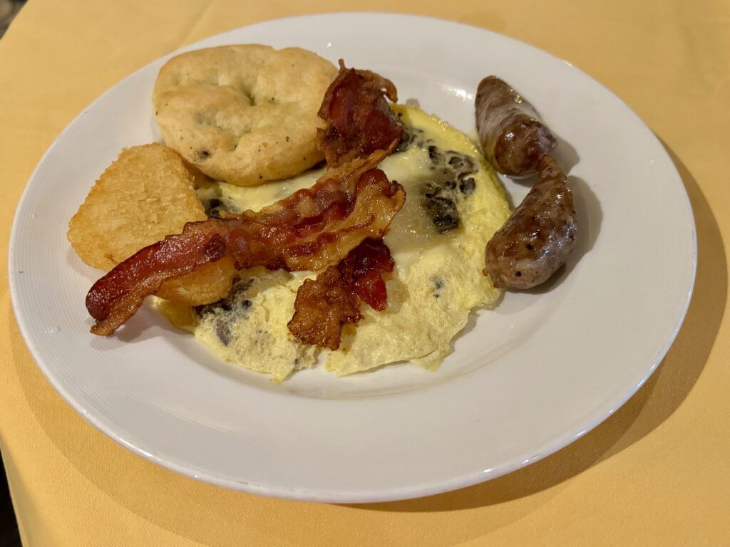 Both breakfast and lunch offer the same menu throughout the cruise. Each day, there is a unique special for breakfast. For lunch, a new vegetarian option is available each day. But the rest of the menu remains the same. While breakfast is served every day, lunch is only offered on sea days and late port arrival days.