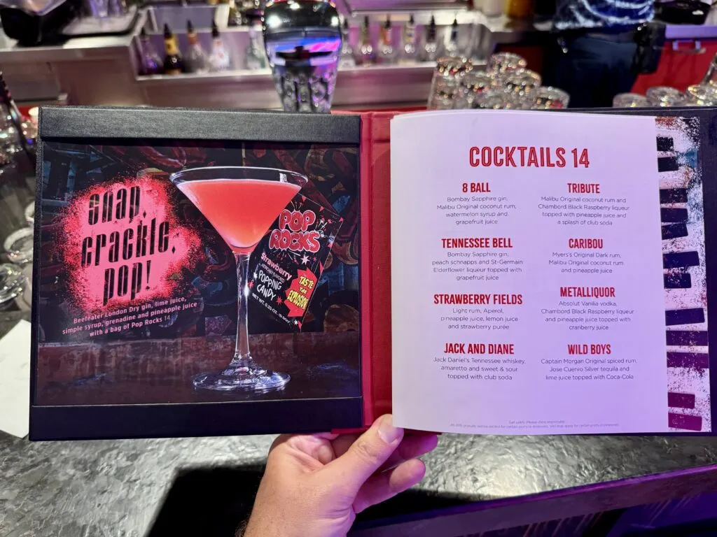 The specialty drink menu includes the same musically inspired cocktails as the Music Hall and Spotlight Karaoke, with the signature drink Snap, Crackle, Pop. Although, it’s likely that the bartenders won’t have the pop rocks to actually make the drink.