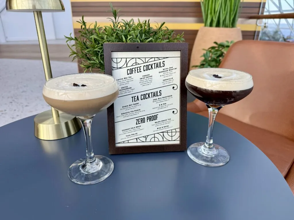 If you’re a coffee lover, you’ll surely want to visit the Rye & Bean Bar on Star of the Seas. Cocktails include an espresso martini, hibiscus tea punch, coffee mai tai, and the zero proof coconut cold brew. Additionally, you can get non-alcoholic drinks like lattes and cappuccinos here that are included in the drink package and coffee card as well. These drinks are priced the same as Pearl Cafe.